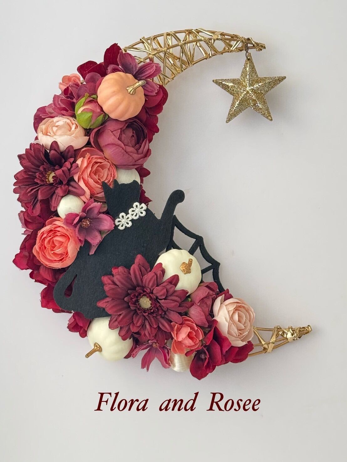 ゴールドの三日月ベースに黒猫やボルドー系の