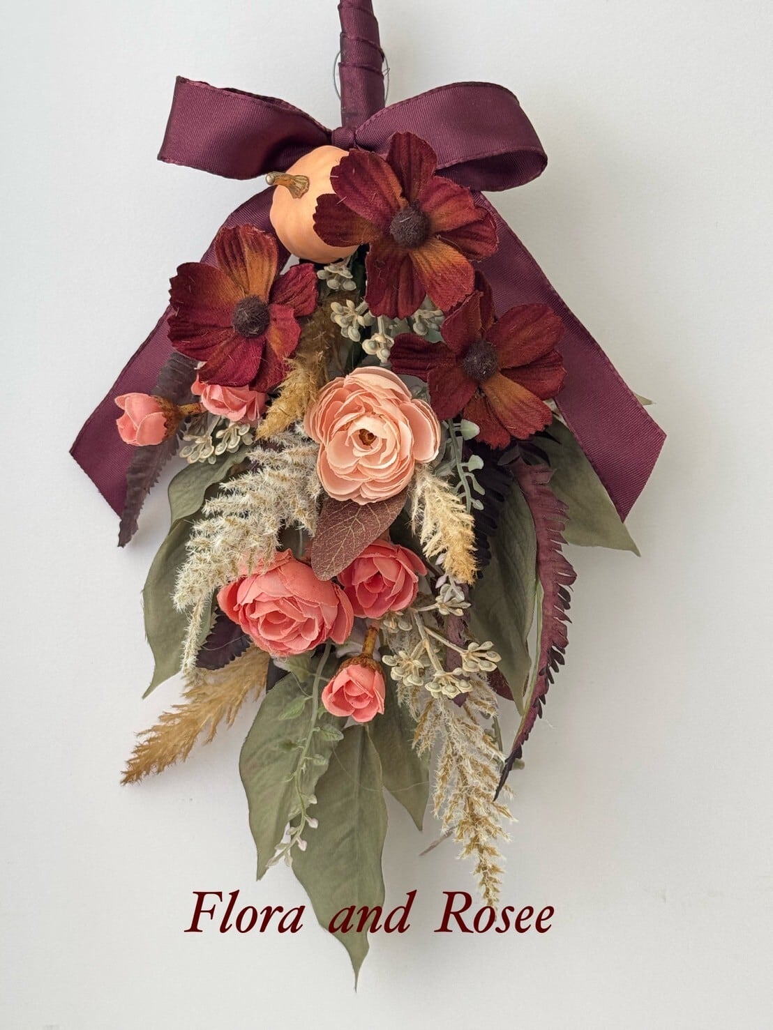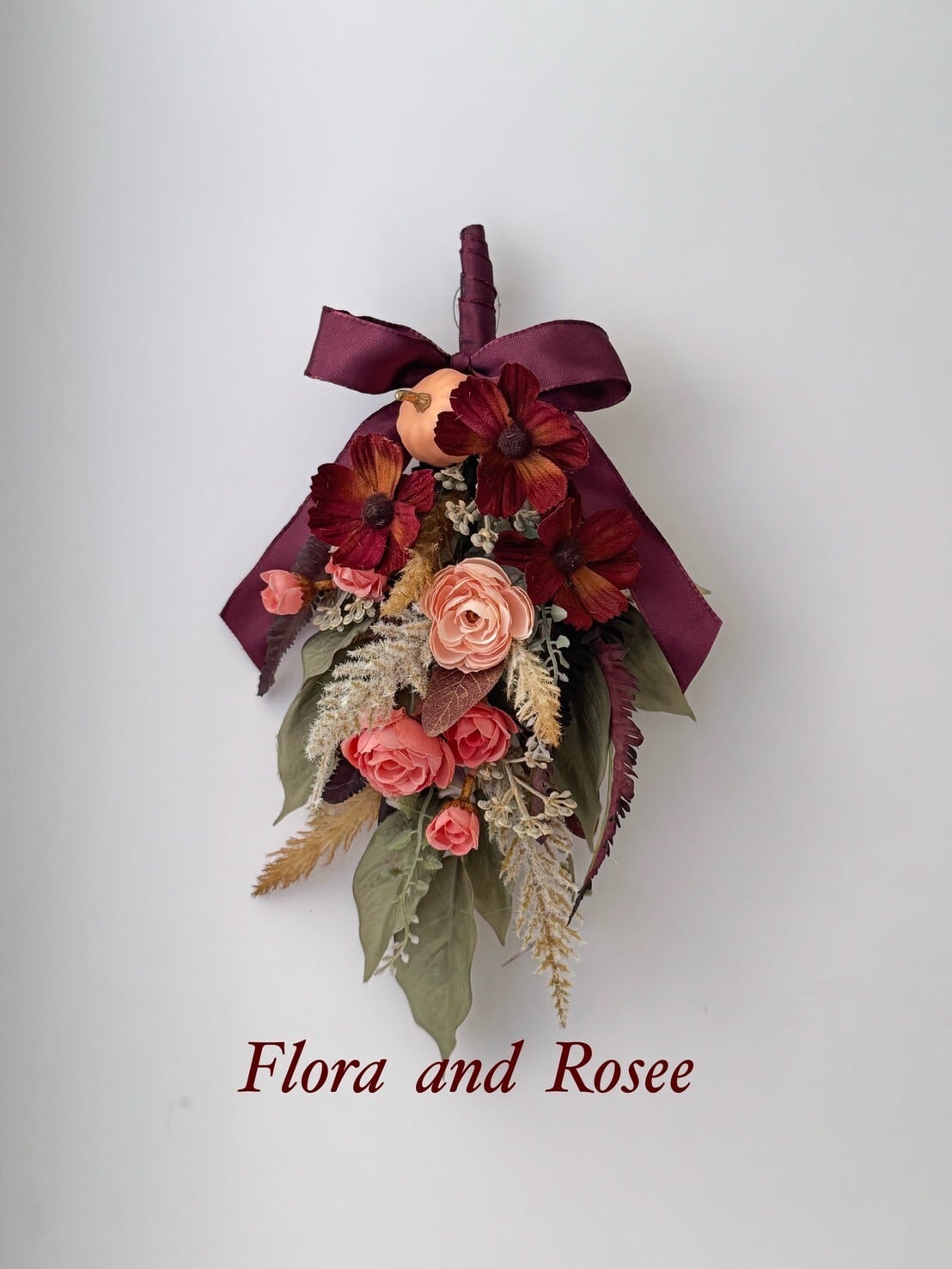 ブラウンコスモスとラナンキュラスやミニカボチャ