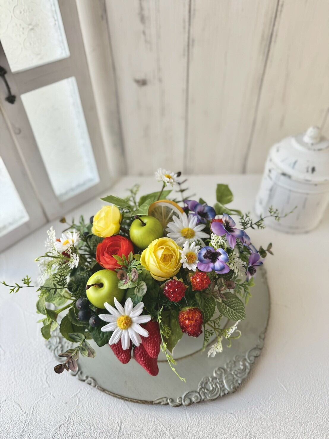 フルーツをつめこんだ春のガーデン風アレンジです