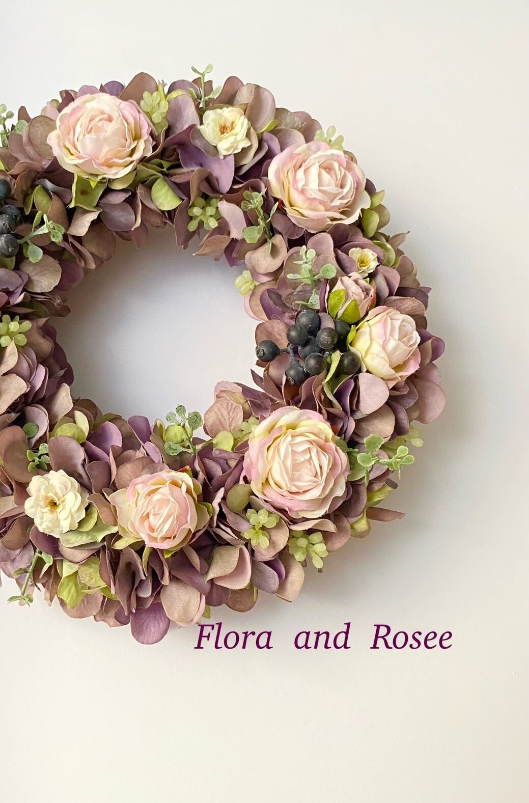 落ち着いたくすみ系の紫のドライ風あじさいと